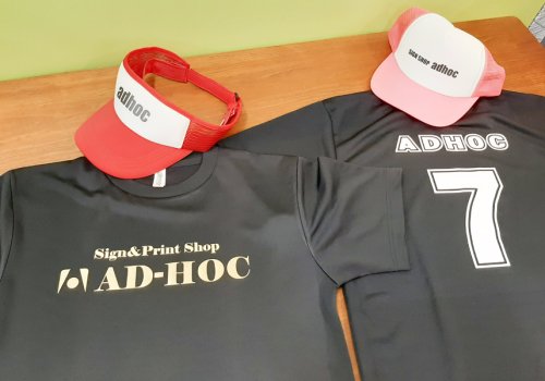 オリジナルTシャツ・看板・横断幕・屋外対応ステッカー・車用マグネットシートなどの印刷はアドホックにお任せください!