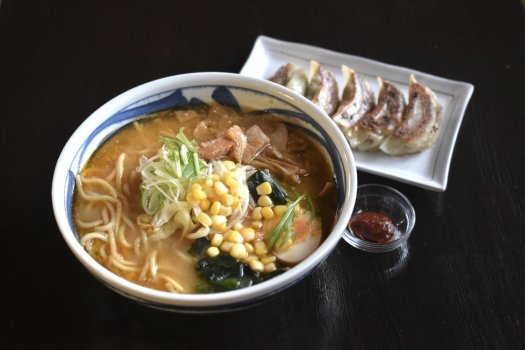 らーめんと餃子、なんと和菓子もお楽しみいただけます。ワンちゃん連れの方は、テラス席はペットOKです♪