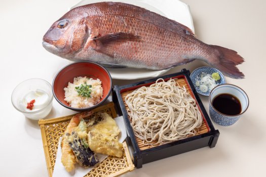 お店で捌いた新鮮な鯛、海老、季節野菜の天ぷら、鯛のあらで炊いた鯛めし、自家製杏仁豆腐など、どれも自慢の逸品です。
