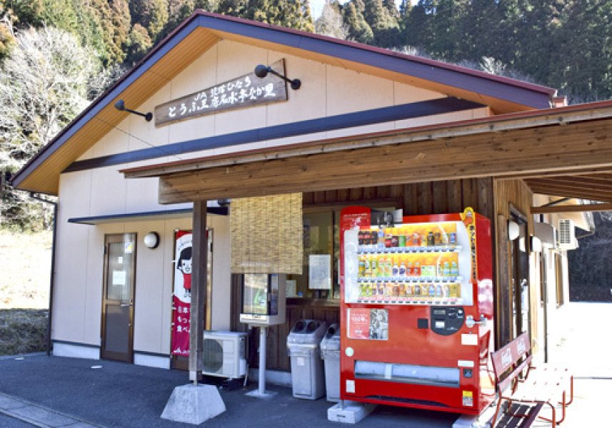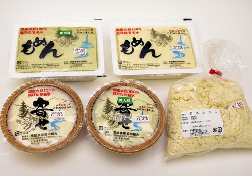 木の根坂の湧水を利用し、地産地消を目的に地場産大豆を使用し、香りと、甘みのある豆腐を製造、販売しています。敷地内には、湧水汲場が有ります。