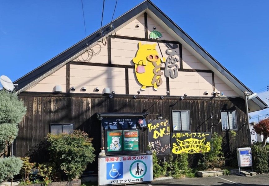茨城県農林水産物等料理店・いばらき健康づくり支援店茨城の銘柄豚肉飲食店指定店舗・ローズポーク・常陸の輝きの食べ比べが味わえる店バリアフリーの店、トイレだけでもお気軽にお寄りください。