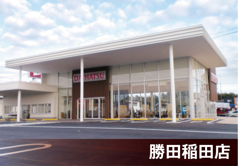 勝田稲田店 勝田稲田店ってどんな店舗? 茨城ダイハツ最大級の展示スペース!新車試乗車20台! 中古車も多数展示しております! つまり...当店にご来店いただければ 新車も中古車もお探しの車が見つかります! 住所/茨城県ひたちなか市稲田967-1 TEL/029-219-5716 FAX/029-202-2140 アクセス/国道6号線沿い稲田十字路のダイハツの大きな看板が目印です! 勝田稲田店ってどんな店舗? 茨城ダイハツ最大級の展示スペース!新車試乗車20台! 中古車も多数展示しております! つまり...当店にご来店いただければ 新車も中古車もお探しの車が見つかります! 住所/茨城県ひたちなか市稲田967-1 TEL/029-219-5716 FAX/029-202-2140 アクセス/国道6号線沿い稲田十字路のダイハツの大きな看板が目印です!
