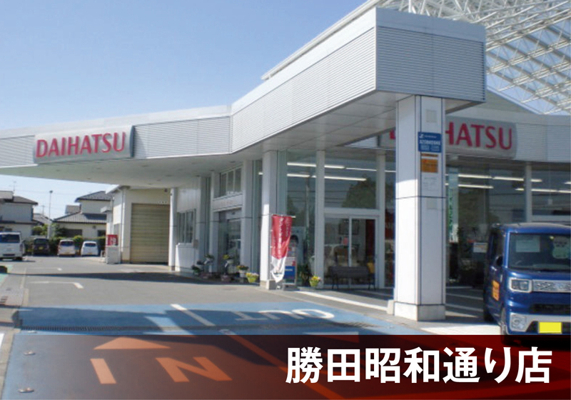勝田昭和通り店 すべてのお客様に一歩先行く感動を!! 当店はJR勝田駅前の昭和通りを、国営ひたち海浜公園に向かう通り沿いにございます。大きなダイハツの看板が目印です。 広くて開放的なショールームにぜひ一度遊びにいらしてください。 スタッフ一同、心よりお待ち申し上げます! 住所/茨城県ひたちなか市馬渡3854 TEL/029-275-0981 FAX/029-275-2054 アクセス/勝田駅東口より昭和通りを道なりに車で10分、または国道245号線海浜公園入口を勝田駅方面に車で7分 すべてのお客様に一歩先行く感動を!! 当店はJR勝田駅前の昭和通りを、国営ひたち海浜公園に向かう通り沿いにございます。大きなダイハツの看板が目印です。 広くて開放的なショールームにぜひ一度遊びにいらしてください。 スタッフ一同、心よりお待ち申し上げます! 住所/茨城県ひたちなか市馬渡3854 TEL/029-275-0981 FAX/029-275-2054 アクセス/勝田駅東口より昭和通りを道なりに車で10分、または国道245号線海浜公園入口を勝田駅方面に車で7分