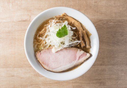 魚介だしの効いた透明感のあるスープでいただく太縮れ麺は絶品です。