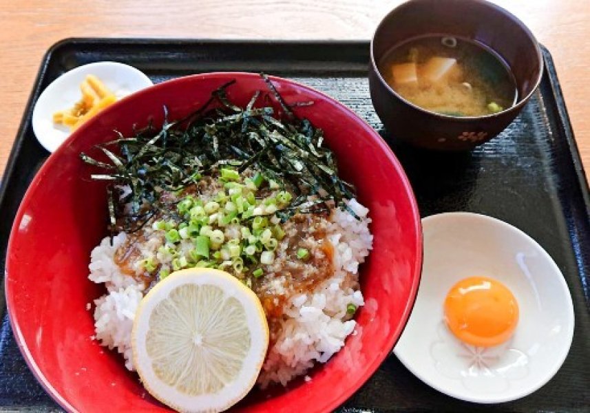 ライダー丼カスタムは、しらす丼に明太子、しらすの佃煮、昆布、温泉卵が付いています★