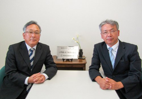 相続相談窓口の専任担当者を紹介します。ひたちなかオフィス担当 茅根宏市(左)、水戸オフィス担当 小山久夫(右)