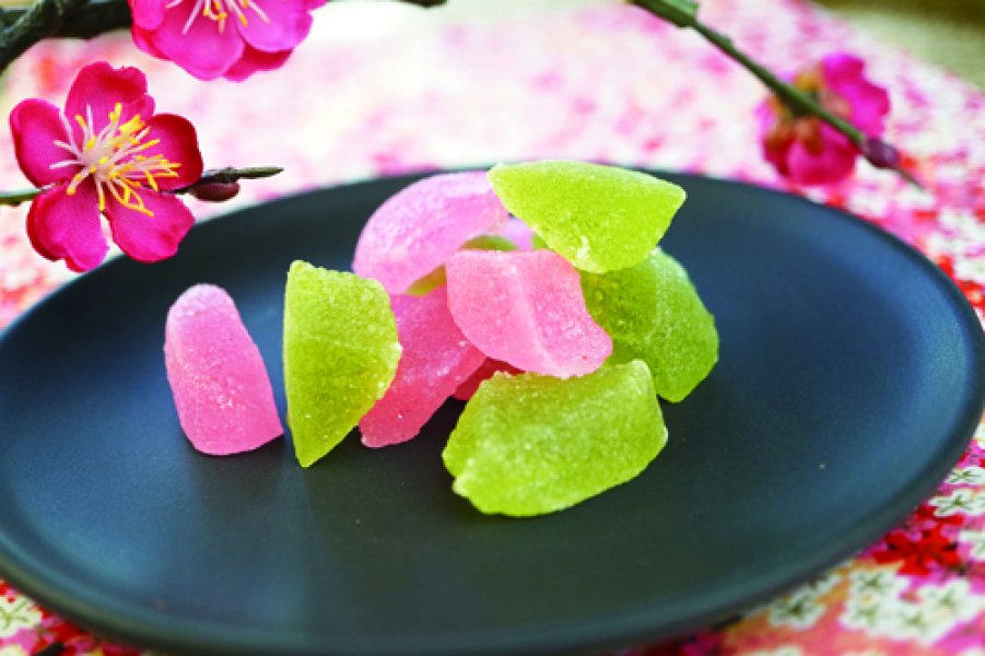 中はトロッと、外はシャリシャリの不思議な食感の「琥珀羹」。