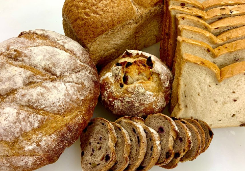 天然酵母は、自家製のブドウ種を使用、ライ麦パンには、自家製のサワー種を使用、あんぱんには、日本古来の酒種を使用しております。