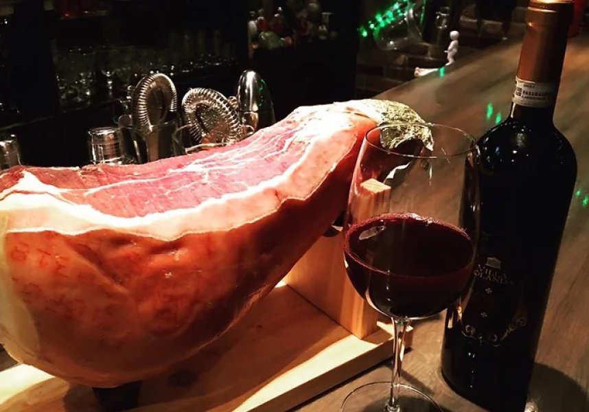 プロシュートの原木をご注文をいただいてからお客様の目の前を切ってお出ししています。