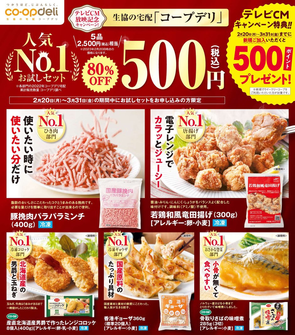 テレビCM放映記念キャンペーン!生協の宅配「コープデリ」