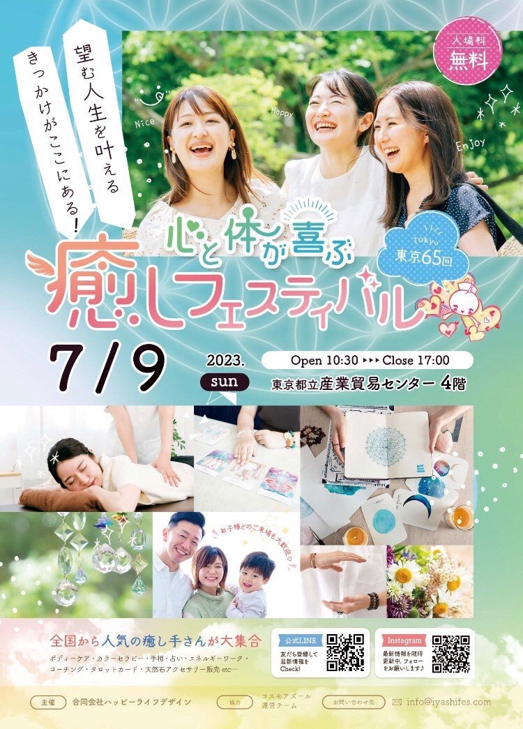 【東京65回】7/9(日)開催 心と体が喜ぶ「癒しフェスティバル」♪