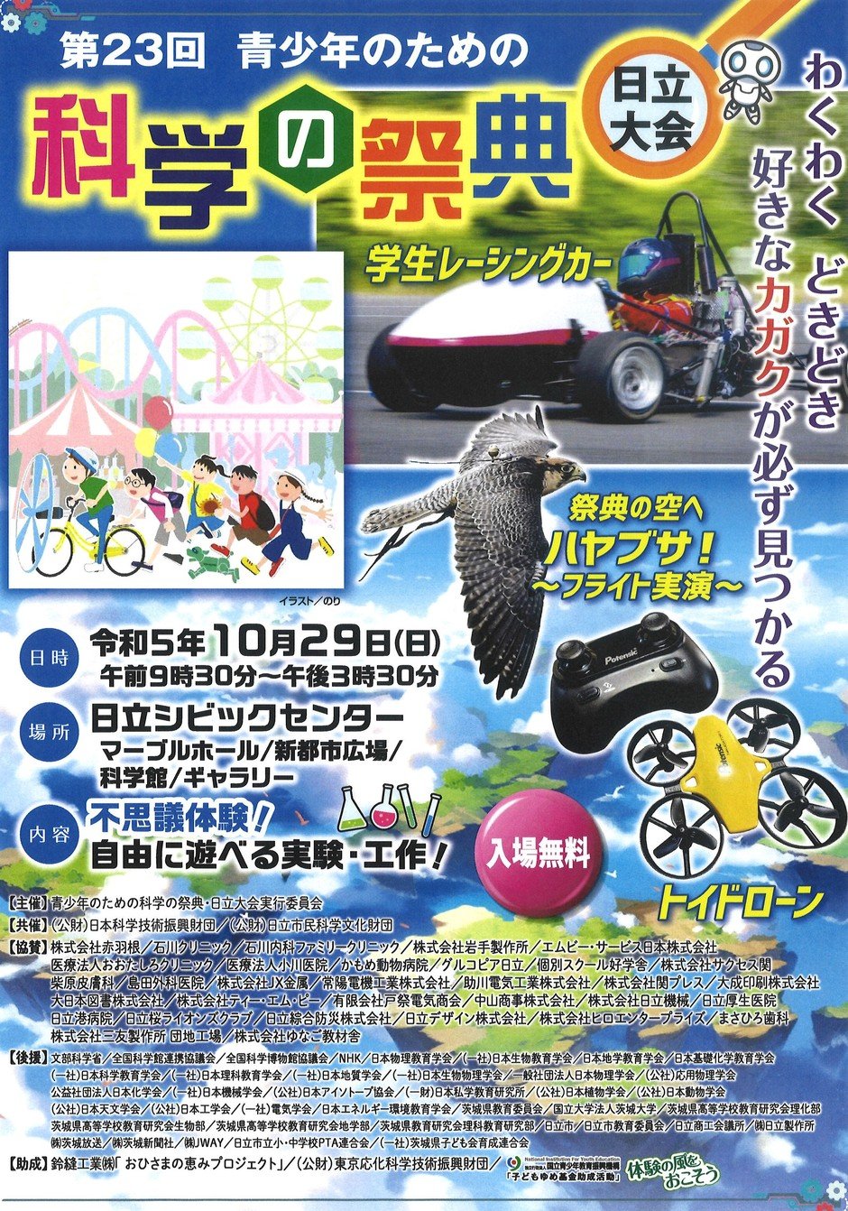 | お問い合わせ | 主催/青少年のための科学の祭典・日立大会 実行委員会 共催/(公財)日本科学技術振興財団(公財)日立市民科学文化財団、常陸STEM 教育研究推進会 |