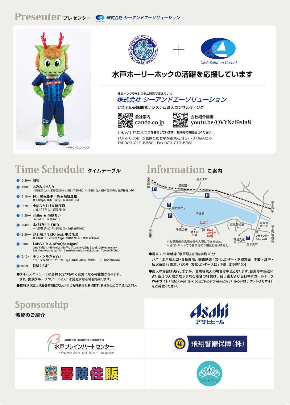 | 場所 | 水戸千波湖畔 はなみずき広場 野外特設ステージ(芝生自由席) |