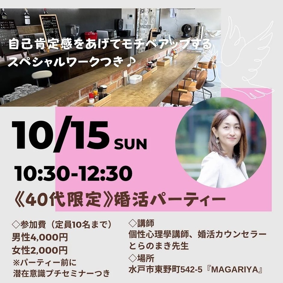 大好評《40代限定》10月の婚活パーティー♪ご案内