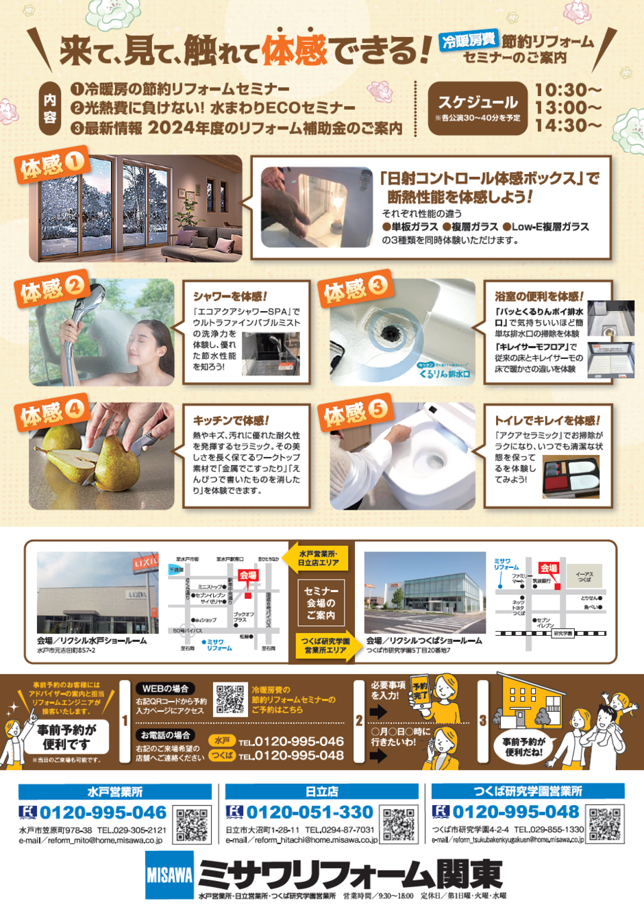 | 場所 | 【水戸エリア】リクシル水戸ショールーム 【つくばエリア】リクシルつくばショールーム |
