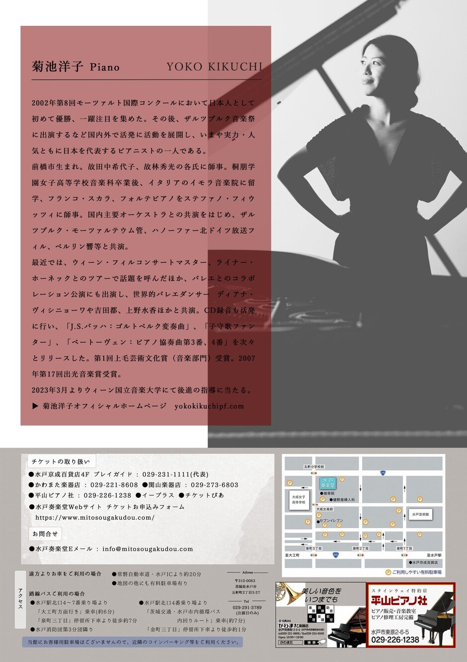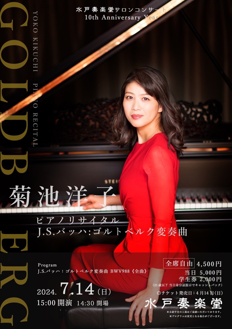 2002年第8回モーツァルト国際コンクールにおいて、日本人として初めて優勝し、一躍注目を集めたピアニスト菊池洋子による「バッハ:ゴルトベルク変奏曲」全曲演奏会。 チケットは当館ホームページ(https://www.mitosougakudou.com/)より、また水戸京成百貨店、かわまた楽器店、平山ピアノ社、関山楽器、チケットぴあ、イープラスでお求めになれます。
