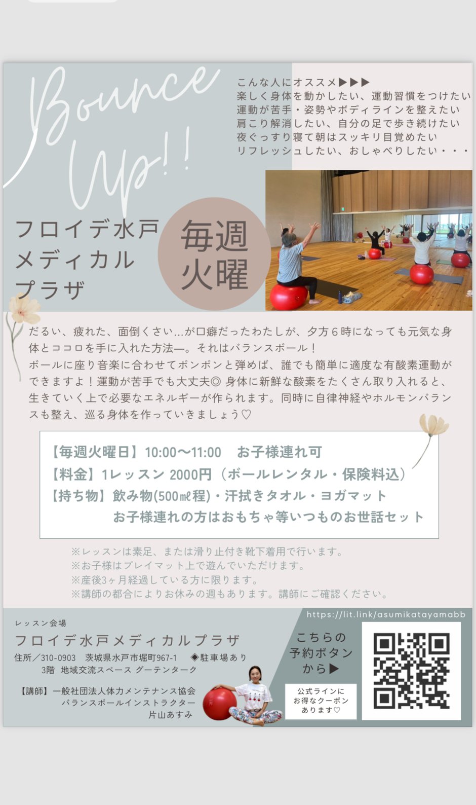 | 場所 | フロイデ水戸メディカルプラザ 3階 地域交流スペース グーテンターク ◆駐車場あり |