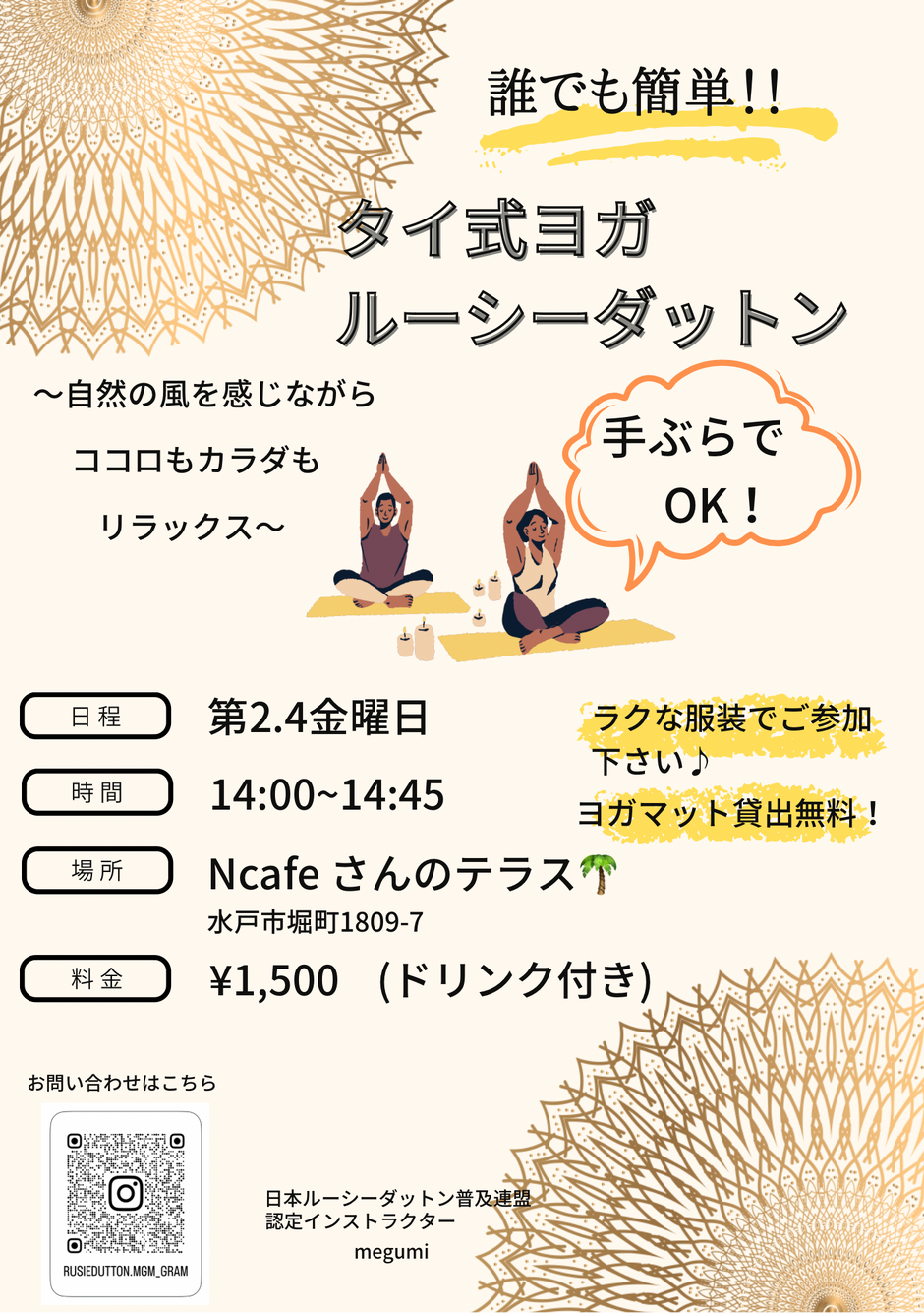 | お問い合わせ | 日本ルーシーダットン普及連盟認定インストラクター Megumi メールアドレス:menmi-kyo@docomo.ne.jp Ncafe 090-5532-1012 定休日:火、水、第3木曜日 |