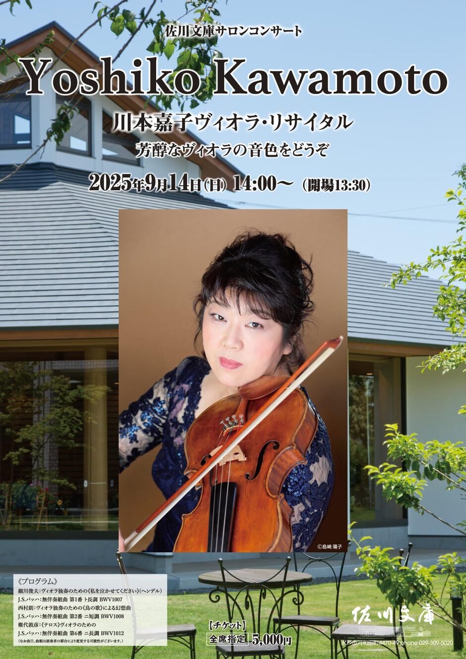 芳醇なヴィオラの音色をどうぞ 川本嘉子ヴィオラ・リサイタル 【プログラム】 細川俊夫:ヴィオラ独奏のための《私を泣かせてください》(ヘンデル) J.S.バッハ:無伴奏組曲 第1番 ト長調 BWV1007 西村朗:ヴィオラ独奏のための《鳥の歌》による幻想曲 J.S.バッハ:無伴奏組曲 第2番 ニ短調 BWV1008 権代敦彦:《テロス》ヴィオラのための J.S.バッハ:無伴奏組曲 第6番 ニ長調 BWV1012