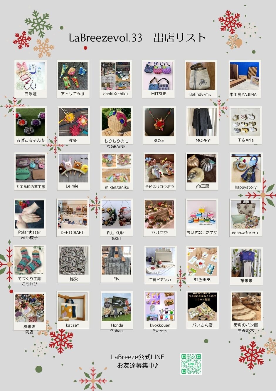 夏と冬、年2回開催しているLaBreeze~ハンドメイド雑貨市~。 布小物や洋服、アクセサリー、陶芸品、革小物、多肉植物、編み小物などいろいろなジャンルの手作り雑貨に出会える一日です。お子様から楽しめるワークショップもあります。 焼き立てパン、キッチンカーも出店し一日たのしめます。 ぜひご家族お友達で遊びにいらしてください。