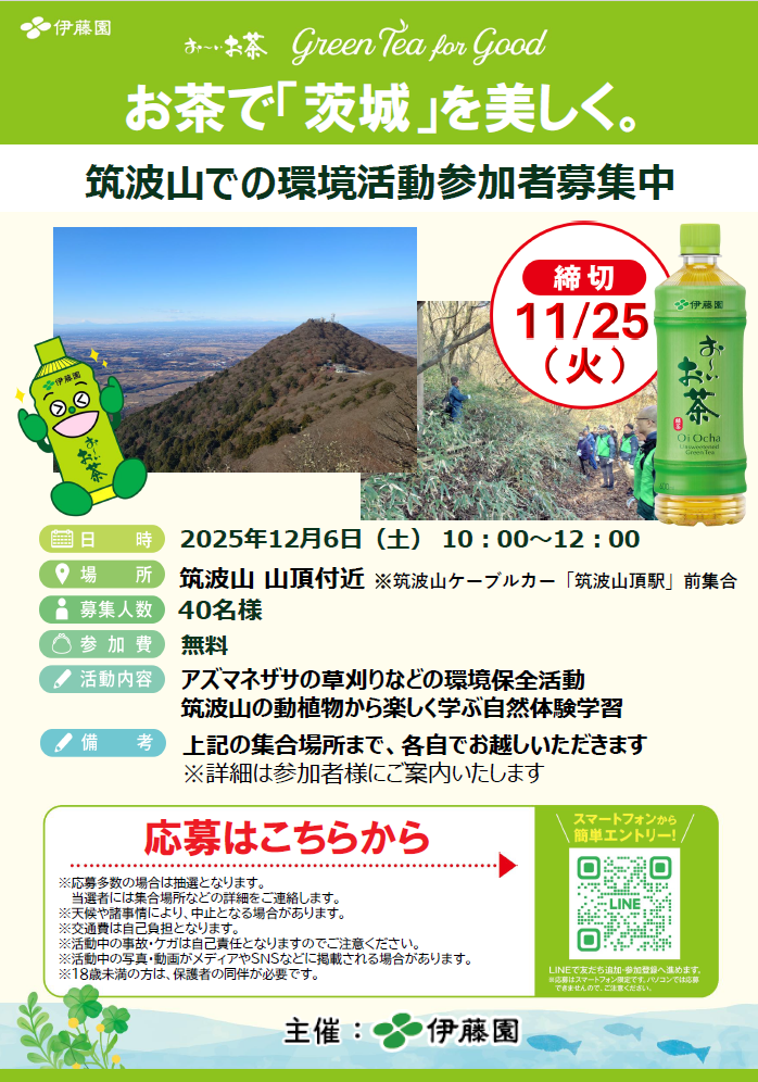 お~いお茶「お茶で茨城を美しく。」筑波山での環境保全活動&自然学習
