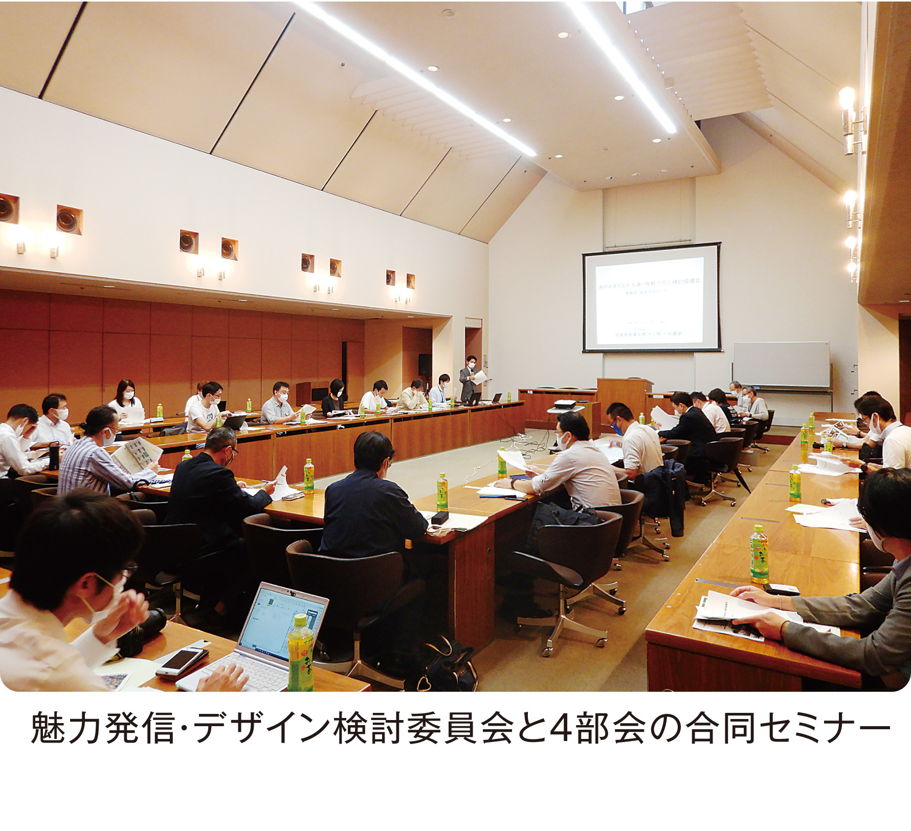 全体会議の下に設置したのは1委員会と4部会。 まずは、まちなかエリアの価値を高める暮らし方や働き方、空間の使い方、景観等の方向性を検討・提示する「魅力発信・デザイン検討委員会」。この委員会が、ビジョンづくりの中心です。次に、大通り(国道50号)や裏通りのあり方そのものについて議論する「道路空間再編・交通検討部会」は、より広域の交通体系や、車線数の問題、通過交通の問題などを検討し、まちなかでの歩き易い空間創出を検討します。また、道路や公園を含めた公共空間や民間の有する空間の利活用方策を検討する「空間利活用検討部会」。空間は存在するだけでは意味がなく、いかに利活用するか、がポイントです。さらに、まちなかの大切なコンテンツであるお店のあり様を検討する「魅力ある店舗づくり検討部会」。どんなお店があったらいいのか、さらに道路などの公共空間とお店の一体的な空間づくりについても考えます。そして、モデル的な裏通りづくりを検討するための「裡ミトづくり検討部会」。これは南町2丁目商店街の方々にお願いしました。 まちみとラボと水戸商工会議所が事務局を担い、協議会や委員会、部会運営をサポートします。 令和2年9月23日、コロナ禍の真っただ中、水戸駅南の茨城県産業会館にて委員会・部会合同セミナーを開催、まちなか再生に向けた本格的な議論が始まったのです。